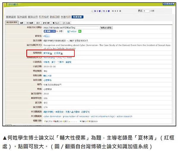 輔大去年發生校園性侵案,雖已進入司法調查程序,但受害學生的男友五月廿九日在臉書以八千字文指控夏林清在處理過程中的言詞,造成當事人二度傷害,並暗指夏林清吃案,引發近幾個月挺夏、挺女學生兩派人士的網路論戰,教育部更表明將介入調查。