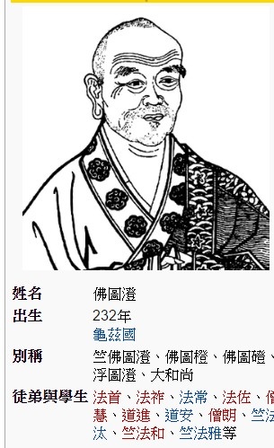 佛圖澄(232年-348年),又稱竺佛圖澄、佛圖橙、佛圖磴、浮圖澄,本姓帛,西域人,南北朝高僧。