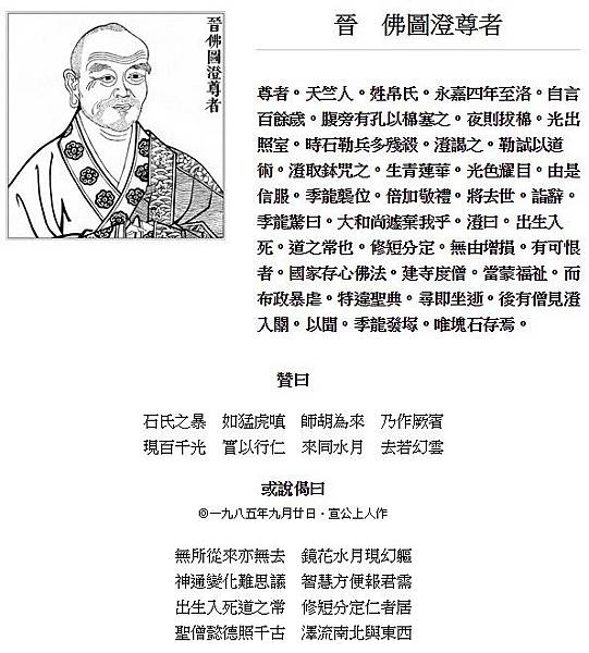 佛圖澄為西域人[1],少年時在烏萇國出家[2],後至罽賓從學[3]。