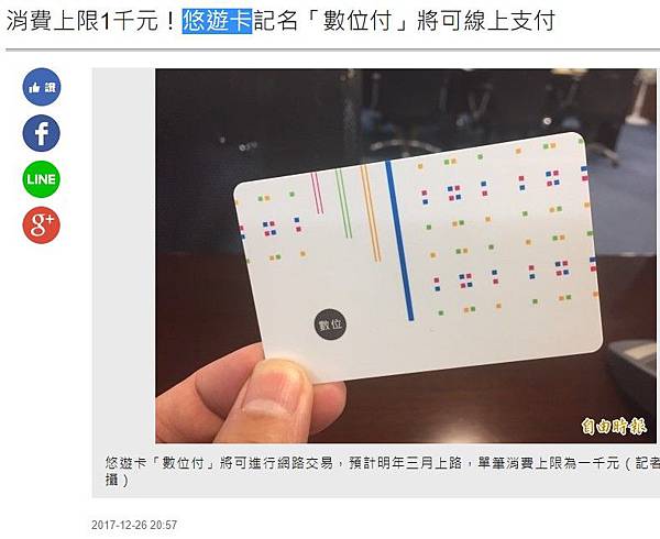 消費上限1千元!悠遊卡記名「數位付」將可線上支付 - 財經 - 自由時報電子報 - https://goo.gl/yhb5uG