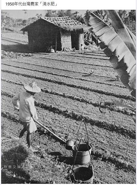 田埂旁有個屎坑-水肥發酵變稠再加水稀釋,好像在那兒稀釋再擔去施肥-用木桶裝大肥澆菜,田邊都有水溝,還要裝水澆菜,以前的人體力真好-挑糞有撇步,屎桶裝滿上面放一把稻草,保証不溢出!水肥當肥料 當時很多人都有蛔蟲