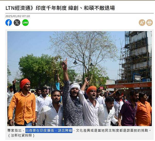 這名台商舉例,有些台灣大型企業把印度分公司更換為印度籍負責人後,反而出現原習慣於台灣主管平等對待的印度員工,感受到種姓歧視。緯創這次事件,值得有意到印度投資的台商參考。