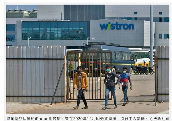 緯創過去位於印度的iPhone組裝廠,曾在2020年12月因勞資糾紛,引發工人暴動,知情人士表示,緯創遇到這樣的狀況,根本原因可能是因為擴張太快,導致緯創在新環境中應付不來。經調查後,緯創也證實,公司在擴張時犯下錯誤,導致部份員工未正確或準時獲得薪資,已採取即時行動修正。