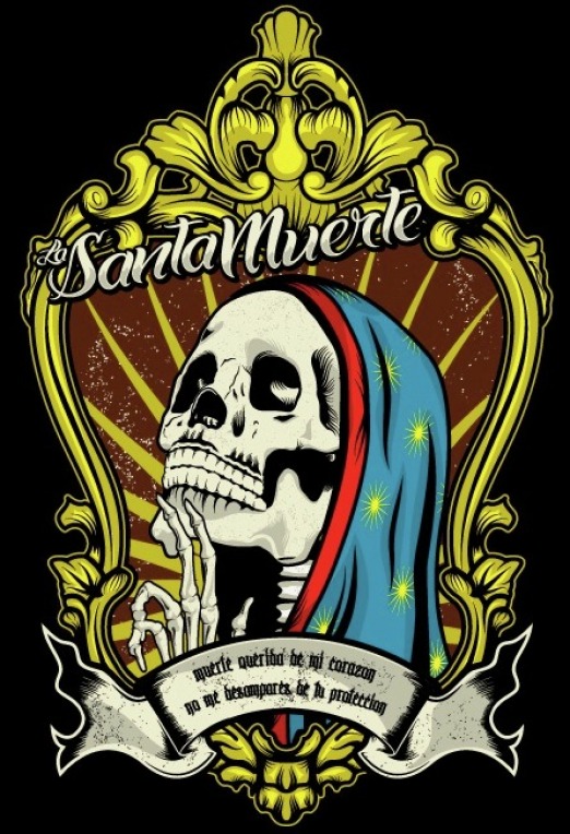 融合了天主教傳統與原住民信仰,死亡聖神遞嬗為一具女性骷髏,身披華麗長袍、手持鐮刀。窮鄉僻壤的農民向衪祈求否極泰來,信徒漸漸擴及工人階級,甚至連罪犯和毒梟無不深信衪的法力無邊。