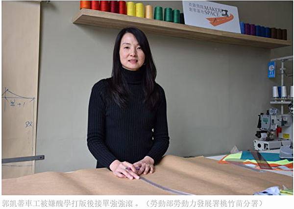郭凱蒂車工被嫌醜學打版後接單強強滾 。(勞動部勞動力發展署桃竹苗分署)