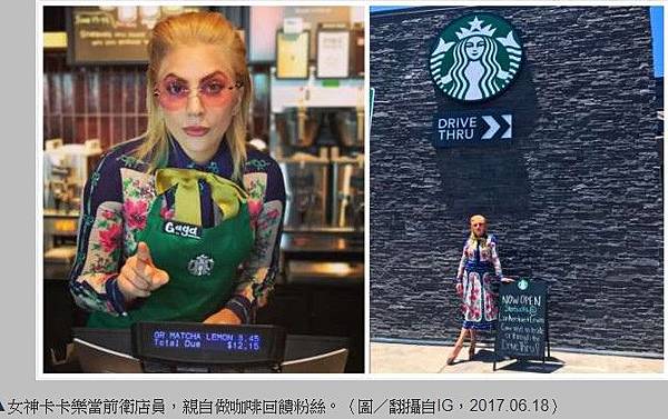 流行天后女神卡卡(Lady Gaga)近日與知名國際連鎖咖啡店合作,於門市客串一日店員,親自替粉絲服務之餘,也順便推廣四款限定飲料。這四款飲料稱為「善心收藏款」( Cups of Kindness collection ),收入得來的百分之25將會捐贈給卡卡的慈善機構「 Born This Way 」。