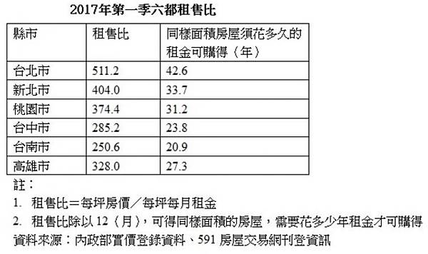 而房價租金比越高,也代表想以租金來攤平購屋成本的時間要越長,對想當包租公的投資客來說,投資時間得拉長,也相對不利,但對租屋者來說,則較為有利;若房價租金比較低,則就是符合目前市場常說的「租不如買」。