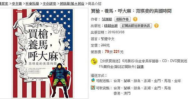 時報出版新書:買槍,養馬,呼大麻──范琪斐的美國時間 中央日報 (2016-03-17 18:31)