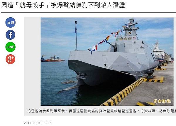 分享國造「航母殺手」被爆聲納偵測不到敵人潛艦到Facebook 分享國造「航母殺手」被爆聲納偵測不到敵人潛艦到Line 分享國造「航母殺手」被爆聲納偵測不到敵人潛艦到Google+
