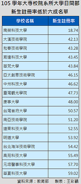 10大註冊率最低國立大學