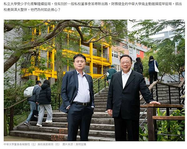 私立大學受少子化衝擊陸續退場,但有別於一般私校董事會苦尋新出路,財務健全的中華大學竟主動選擇提早退場,捐出校產與清大整併。他們為何如此佛心?