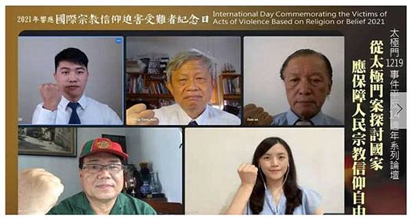 響應「國際宗教信仰迫害受難者紀念日」線上論壇,學者專家呼籲國家平反太極門假案,重視及保障人民的信仰自由。(翻攝畫面)太極門受信仰迫害25年 學者籲政府快改正歷史錯誤 https://bit.ly/3gowKBf