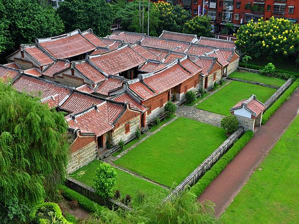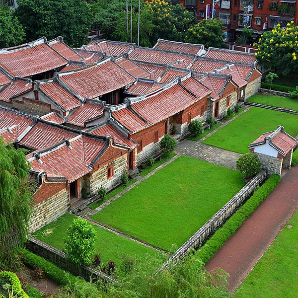 古色古香的蘆洲李宅,佔地2000多坪,仿中原古厝建築格局,採用三進三落左右雙護龍的四合院,共有9廳、60房、120門,可見李氏家族當時人丁興旺。牆面堅硬的石頭色澤與屋頂沉穩的紅瓦色,刻畫出李家獨特的家風。相較於附近高聳林立的大樓,形成一個強烈的對比。