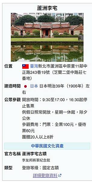 蘆洲李宅|文化資產複合查詢|文化部文化資產局--國家文化資產網 https://bit.ly/3I4zvsq