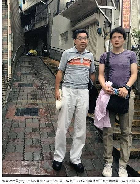 灣生渡邊薰(左),去年9月在基隆市政府員工協助下,找到出生地愛五路忠勇社區,完成...