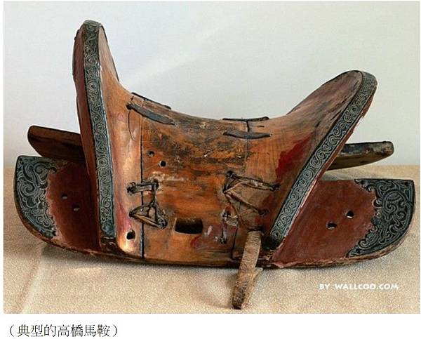 為何要要提匈奴呢?因為根據考古學的發現,在世界歷史上率先使用新型馬鞍與簡易馬鐙的民族應該是『匈奴』。這邊我們先說說『馬鞍』與『馬鐙』對騎兵的重要性。馬鞍是人、馬完美結合的關鍵,綜觀馬鞍的沿革,正好反映出因應人的需求而完善化的過程。最原始的馬鞍只是一塊布或是皮革,讓騎士在馬背上較為舒適,也有些許的穩定作用,接著馬鞍下增加了墊料,使馬鞍與馬背間更為吻合,但最重要的是『木質(硬質)馬鞍』的誕生,這樣可以讓騎士的整個體重平均地透過馬鞍分散到馬背上,不但更安全,對戰馬的健康也有顯著的改善,然而,匈奴人最讓人驚訝的是,他們最早發明了『高橋馬鞍』,即兩頭是很高的木制船型托架,因為其兩頭較高,這樣馬匹在奔馳時,騎士前可倚,後可靠,在縱向上可以保證戰馬衝刺與減速時,都不會輕易摔下來,並且能夠雙手放開韁繩,完成搭箭,張弓,放箭而不至摔下馬匹(我國可能在魏晉才出現此種馬鞍)
