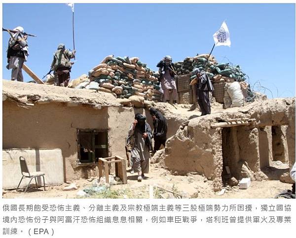 俄國長期飽受恐怖主義、分離主義及宗教極端主義等三股極端勢力所困擾,獨立國協境內恐怖份子與阿富汗恐怖組織息息相關,例如車臣戰爭,塔利班曾提供軍火及專業訓練。(EPA)