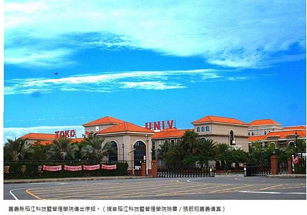 又一所大專院校退場?!嘉義縣稻江科技暨管理學院傳出停招,據消息人士指出,校方下午召集所有老師開會,表示學校經營到本學期結束,所有教師優離、優退,學生則輔導轉學,代理校長洪大安明天下午將統一對外說明,對董事會決定,師生教職員都很錯愕震驚。