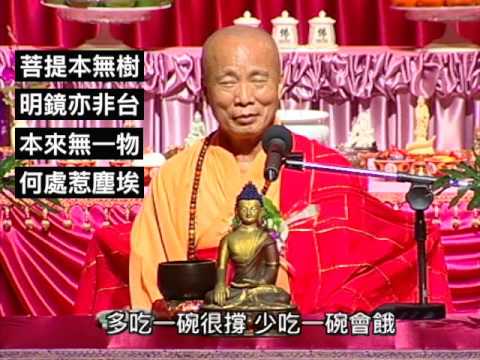 我出生在台中鄉下,靠海邊的一個農村,是個農家子弟,在鄉下過著很淳樸的生活。一直到當兵的第三年,民國五十八年,大概七、八月份時,因為看到中央日報副刊,有關於錢穆教授跟留學日本的楊鴻飛居士兩位在作有關《壇經》方面的筆戰。我偶然之間看到了,大為贊賞:中國有禅宗?禅宗這麼好!以前怎麼都沒有接觸過?於是就請我在台北工作的四弟到重慶南路四維出版社,因為那時候打筆戰有書商趁這個機會做廣告,我看到四維出版社有丁福保居士所注解的《六祖壇經》。我請我四弟買了寄到軍中。當時我當兵第三年,一個晚上我就看完了。其中看到六祖的偈語「菩提本無樹,明鏡亦非台」,尤其第三句、第四句「本來無一物,何處惹塵埃」,心想我們的生命原來那樣的實在,什麼也沒有缺少!很喜歡。