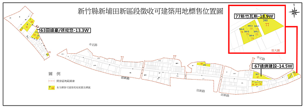 新埔田新重劃區23地號、361地號與390地號等住宅用地分別被樂逸建設田峰豪先生/陞揚開發徐攸悠女士、遠錦建設張書昭先生,以及新竹瓦斯邱鏡淳先生標得,得標金額每坪單價分別為13.3萬、14.5萬,以及18.9萬。