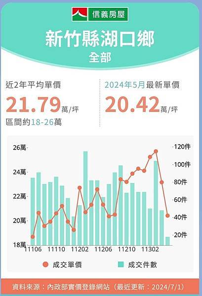 日前有網友在PTT發文表示,竹北現在房價很貴,周圍的新豐、湖口補漲,未來可能漲到50萬元。東森房屋研究中心統計實價登錄系統指出,湖口鄉目前電梯大樓電梯均價一坪約17萬,最多賣到20多萬,華廈16萬,公寓13.8萬元,離50萬元非常遙遠。