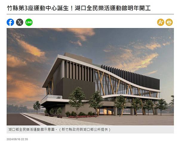 竹縣第3座運動中心誕生!湖口全民樂活運動館明年開工 - 生活 - 自由時報電子報