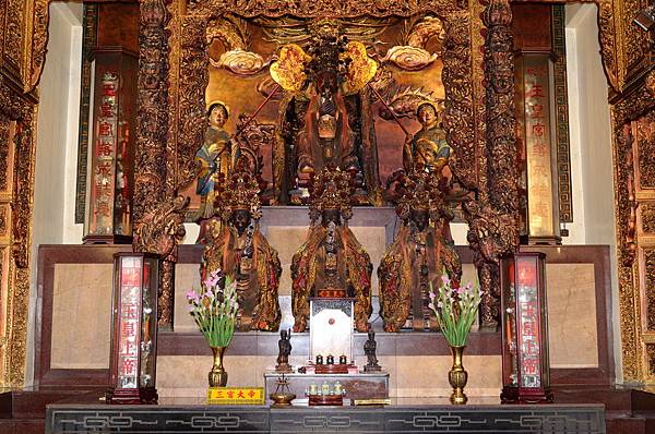 上層中神龕供奉玉皇上帝,御前為三官大帝,上左神龕供奉南斗星君,上右神龕供奉北斗星君,兩邊立者為王天君、張天師、趙天君、托塔天王為四大天君,下層中神龕供奉太上老君,至聖先師、關聖帝君,下左神龕供奉孚佑帝君,下右神龕供奉太白金星,統稱五恩主。