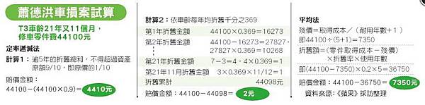 維修費用中的材料費花了10萬元;但甲車開了兩年,基於材料費的部分要扣除折舊,所以折舊後的賸餘價值:
