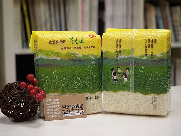 陸穀實業推出精緻的芋香米包裝(右2是小老闆蘇柏嘉)。