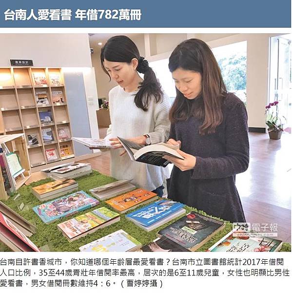台南人愛看書 年借782萬冊 - 中時電子報 - https://goo.gl/9zU8MF