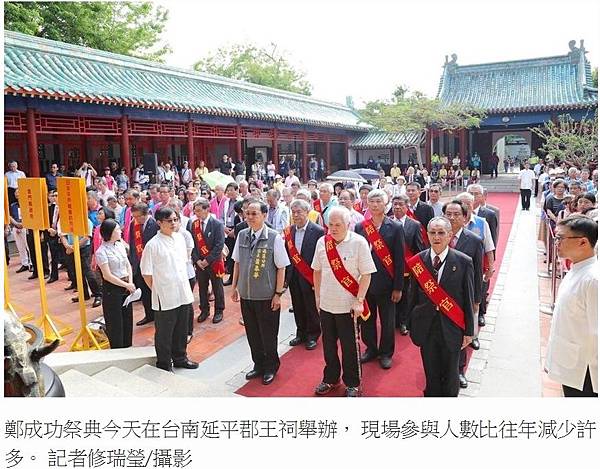 鄭成功祭典今天在台南延平郡王祠舉辦, 現場參與人數比往年減少許多。 記者修瑞瑩/攝影