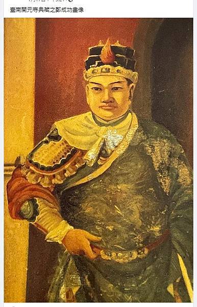 台博館收藏的鄭成功畫像,原被認為17世紀鄭在世或死後沒多久所畫,但有學者研究認為是18、19世紀的畫作。 記者修瑞瑩/翻攝