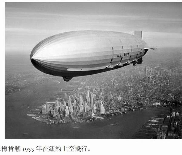 ▲梅肯號 1933 年在紐約上空飛行。
