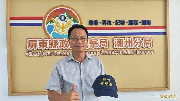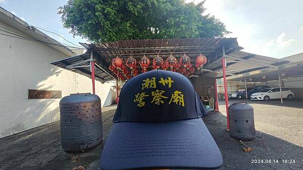 潮州分局有全國唯一的「警察廟」,路跑活動的紀念帽印上「潮州警察廟」。(警方提供)