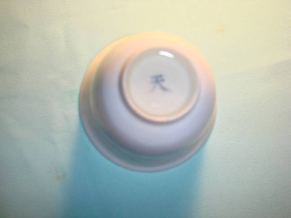 杯底釉下青花雙方框線內書“大明成化年制”六字巧拙楷書款。呈朦朦狀,有釉泡如珠。