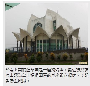 南下營的蓮華園是一座納骨塔,最近被網友傳出認為台中媽祖園區的基座跟它很像...台中媽祖園區基座怎麼那麼像這座建物... - 生活 - 自由時報電子報 http://tinyurl.com/yyvxrdyw