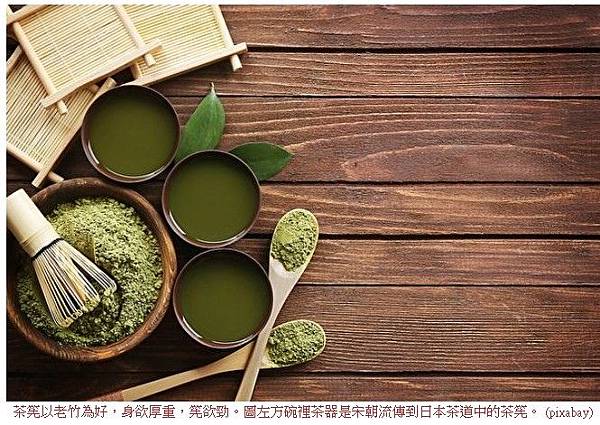 茶筅以老竹為好,身欲厚重,筅欲勁。圖左方碗裡茶器是宋朝流傳到日本茶道中的茶筅。 (pixabay)