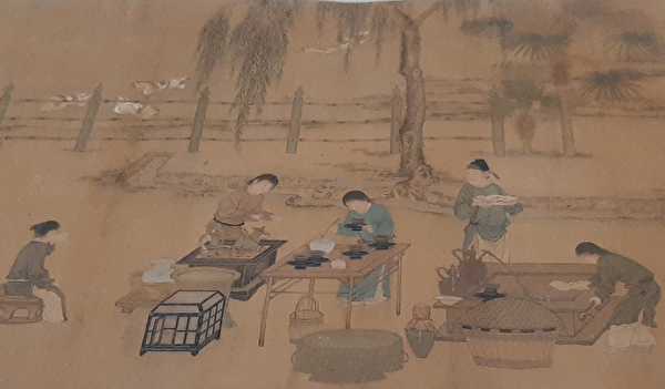 宋朝人採茶,身後一般也背著茶簍,不過當要採摘尚未開面的細嫩茶芽的時候,就請把茶簍扔一邊吧!《大觀茶論.採擇》云:「茶工多以新汲水自隨,得芽則投諸水。」採茶工人隨身攜帶新鮮乾淨的水,每採一枚茶芽,就放到水裡浸著。《品茶要錄.壓黃》云:「采佳品者,常於半曉間沖蒙雲霧,或以罐汲新泉懸胸間,得必投其中,蓋欲鮮也。」