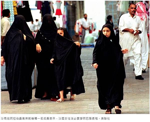 根據沙烏地阿拉伯法律,沙國女性在公共場合必須穿阿巴雅長袍,以免被陌生男性看到。美...