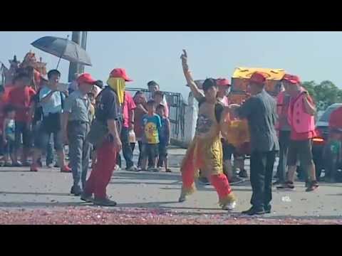 最精采、最觸目驚心、也最不可思議的就是有些乩童,能用一尺半至二尺長的尖頭銅針,一口氣將兩頰洞穿,兩邊則懸貼符祿,一路走,一路搖頭晃腦,這樣的表演,令旁觀的人感到頭皮發麻,膽小的甚至閉上了眼睛。更不可思議的是,有些「道行高強」的乩童,還能在穿頰而過的銅針兩端各懸掛一個沉甸甸的香爐。而這些「法術」都是當著眾人之面完成的,實在是看不出有「作假」處,但若說是真的,如果不驚服「神明」的法力無邊,則又無其他道理可以解釋。