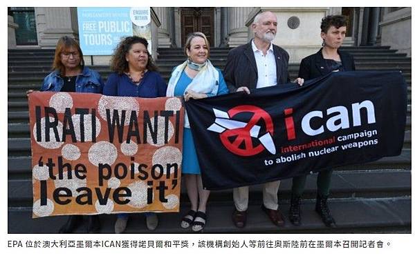 EPA 位於澳大利亞墨爾本ICAN獲得諾貝爾和平獎,該機構創始人等前往奧斯陸前在墨爾本召開記者會。