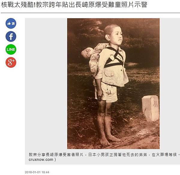 分享核戰太殘酷!教宗跨年貼出長崎原爆受難童照片示警到Facebook 分享核戰太殘酷!教宗跨年貼出長崎原爆受難童照片示警到Line 分享核戰太殘酷!教宗跨年貼出長崎原爆受難童照片示警到Google+