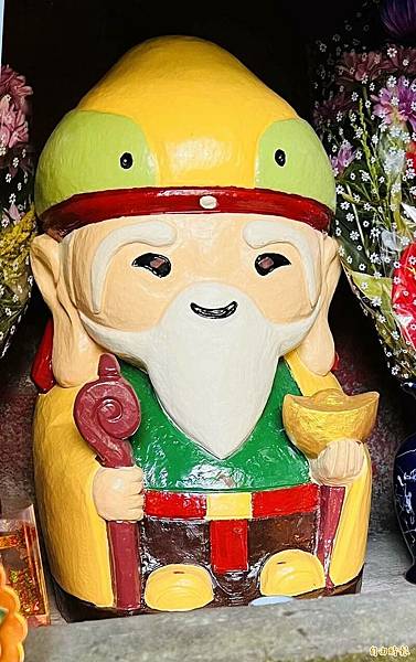 桃園龍潭大北坑土地公換上Q版土地公當家,令信眾嘖嘖稱奇。(記者李容萍攝)