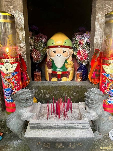 協會總幹事江增平也說,大北坑地區這座古色古香的土地公廟,位在三水里大北坑的中心點,早期因為地方沒有一個信仰中心,所以居民選在這處興建眾伯公福德祠,成為大北坑保存最古老的土地公廟,有鑑於之前供奉的土地公神尊兩度遭竊,如今嶄新的土地公石雕重達4、50公斤,且剛好卡在廟門門檻上,相信小偷想偷也偷不了。