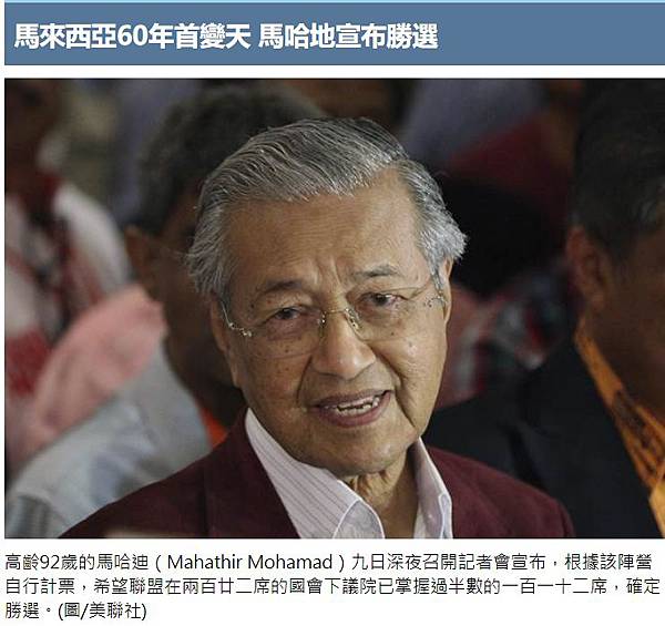 馬來西亞60年首變天 馬哈地宣布勝選 - 中時電子報 - https://goo.gl/Zig4ky