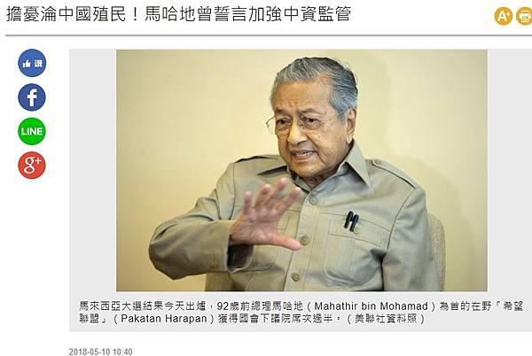 分享擔憂淪中國殖民!馬哈地曾誓言加強中資監管到Facebook 分享擔憂淪中國殖民!馬哈地曾誓言加強中資監管到Line 分享擔憂淪中國殖民!馬哈地曾誓言加強中資監管到Google+