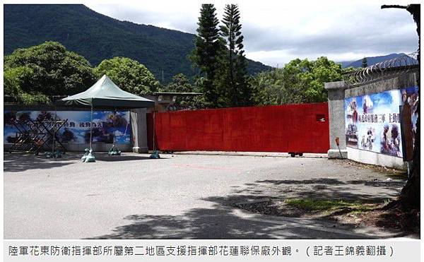 陸軍花東防衛指揮部所屬第二地區支援指揮部花蓮聯保廠外觀。(記者王錦義翻攝)