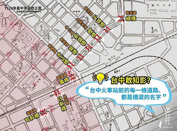 綠川的每一座橋,都有自己的名字,而他們的名字成為道路。因為台中是一座河川城市,綠川的整治是成為宜居城市的原點。