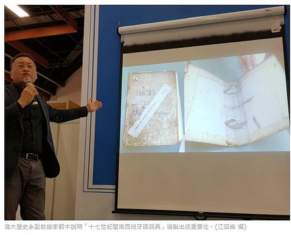 清大歷史系副教授李毓中說明「十七世紀閩南西班牙語詞典」複製出版重要性。(江昭倫 攝)