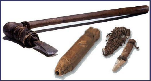 好!問題來了,這位「奧茨先生」的隨身物件,全部都相距千年、跨越歐亞大陸,甚至他身上所穿的羊皮外套都產自遙遠的「中國」,不同時空的物品和人的關係該怎麼解釋呢?一個 5300 多年前「石器時代」(Stone Age) 的古代人,怎麼可能去製作 7000 年前的木箭呢?但斧頭卻是西元前 27 年至 476 年間「羅馬帝國」時期的東西,一把對他來說是 3000 多年後的武器........連科學家也無法解釋!